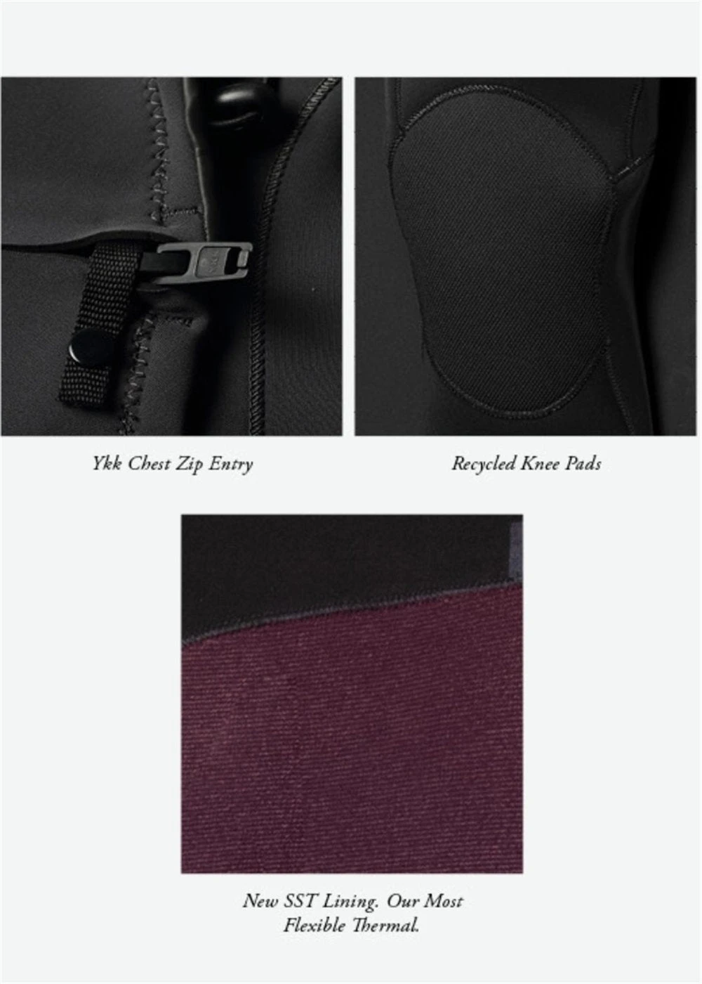 • Chest-zip entry, minimal bulk with contoured water tight design • Tripled glued, blind stitched seams • Vissla’s super stretch Neo 3.0 tape at crotch, knees, and stress points allows for maximum seam sealing without compromising stretch and comfort. • Easy access secure key cord • Knee pad, Upcycled Supratex abrasion resistant for flexibility and strength • Liquid tape cuff seals to prevent flushing at cuffs • Glideskin on the neck seals to skin to prevent flushing