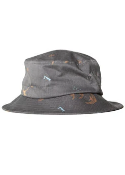 Heavy duty, fairly deep camo print bucket hat made from polyester and cotton. Details include flexible/packable visor with caliper logo embroidery at center front. You’ll blend right in . . .