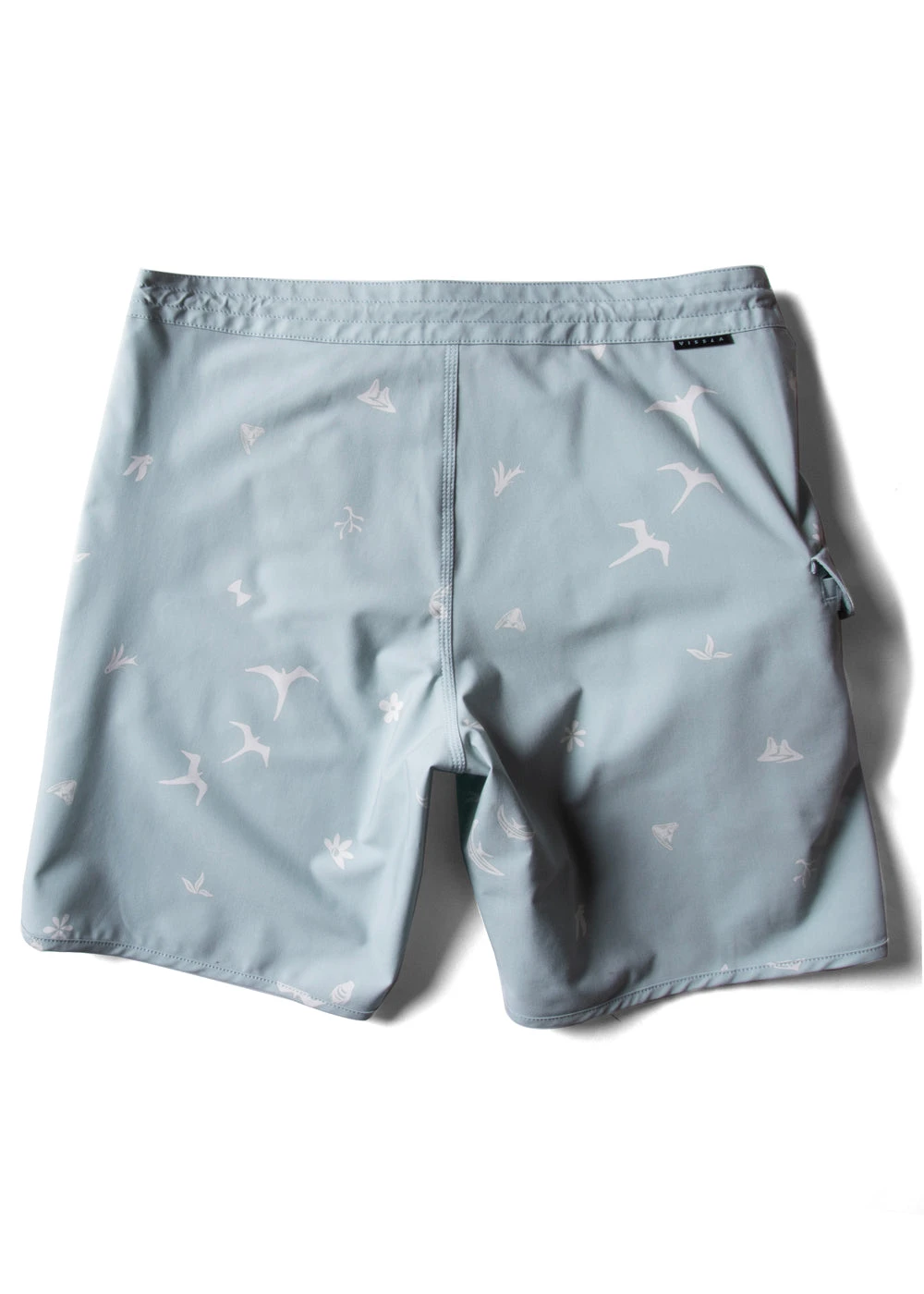 The latest collaboration features original artwork from the talented Chris Miyashiro. Channeling inspiration from the windward side of Oahu, Chris got his start early on – surfing, skating, and exploring the radical landscapes of Hawaii. He would eventually break out to the North Shore and elsewhere in the relentless pursuit of a multifaceted craft. Throughout this capsule the fabled I’iwi Bird takes flight, paying homage to a multitude of iconic island abstractions. Not only does it mesmerize, the Island Stargazer Boardshort is built to perform in all conditions. Our premium 4-way stretch fabric promotes optimal comfort and mobility, resulting in more waves and longer sessions. Made sustainably, using a lightweight blend of recycled poly repreve, coconut fibers, and cotton. Style features include a scalloped hem side pocket and integrated key rope. Novelty Vissla embroidered patch at side. 18.5” outseam measurement.