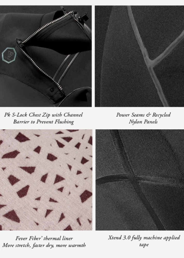 Completely redesigned for ease of entry and to maximize flexibility without losing warmth. Less panels to create even more stretch, comfort, warmth.